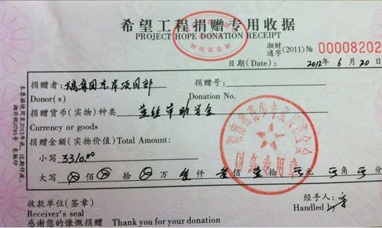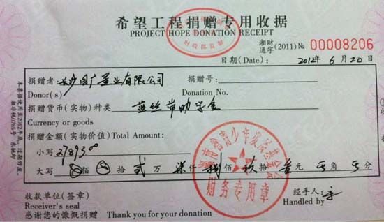 知識啟迪夢想,愛心孕育希望。長房集團秉承“藍絲帶”愛心傳遞理念,認真貫徹執(zhí)行“購買1㎡長房集團的住宅產(chǎn)品,即為失學兒童捐贈一元錢”的活動。 2011年,長房集團住宅銷售面積為214897平方米(住房保障局備案數(shù)據(jù)),向湖南省青少年發(fā)展基金會捐款214897元。