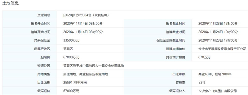 2020年11月24日,長房集團(tuán)同時摘牌長沙市芙蓉區(qū)064號地塊和岳麓區(qū)098號地塊,為集團(tuán)儲備長沙城區(qū)核心位置項目奠定了更堅實的基礎(chǔ)。