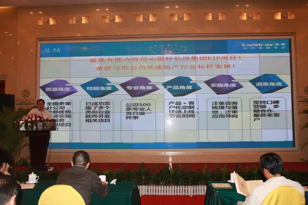 隨后,藍(lán)凌公司副總裁李翼對項(xiàng)目情況進(jìn)行了簡單介紹,藍(lán)凌公司項(xiàng)目總監(jiān)袁玲通過結(jié)合其它地產(chǎn)公司的典型案例,對綜合信息平臺(tái)(EIP)項(xiàng)目的應(yīng)用內(nèi)容、重要性、實(shí)施計(jì)劃及未來展望作了詳細(xì)闡述。