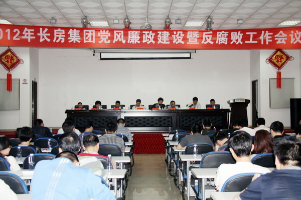 4月24日,長房集團(tuán)召開2012年黨風(fēng)廉政建設(shè)暨反腐敗工作會議。集團(tuán)黨委書記、董事長全臻,副總經(jīng)理李亞夫、彭安琪、王亞平、蘭萍,監(jiān)事會主席、紀(jì)委書記、工會主席康宏,副總經(jīng)理易學(xué)良、田豐出席了會議,總部部門負(fù)責(zé)人及下屬單位負(fù)責(zé)人參加了會議。會議由集團(tuán)副總經(jīng)理李亞夫主持。