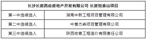 根據(jù)長(zhǎng)沙房產(chǎn)(集團(tuán))有限公司(以下簡(jiǎn)稱“長(zhǎng)房集團(tuán)”)相關(guān)管理制度及庫內(nèi)公開比選公告的規(guī)定,長(zhǎng)房集團(tuán)招標(biāo)采購代理業(yè)務(wù)采購項(xiàng)目(長(zhǎng)沙長(zhǎng)房西府房地產(chǎn)開發(fā)有限公司 長(zhǎng)房悅香山項(xiàng)目)庫內(nèi)公開比選工作已經(jīng)結(jié)束。本項(xiàng)目比選辦法采用合理最低價(jià)法,無法確定排序的,以抽簽的方式進(jìn)行排序?,F(xiàn)將庫內(nèi)公開比選中選候選人(排序)公示如下: