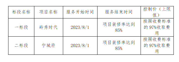 4、標(biāo)段劃分:本項(xiàng)目分為二個(gè)標(biāo)段(一標(biāo)段:嶺秀時(shí)代;二標(biāo)段:寧城府)。同一比選響應(yīng)人可以同時(shí)參加2個(gè)標(biāo)段的比選,且允許中2個(gè)標(biāo)段。