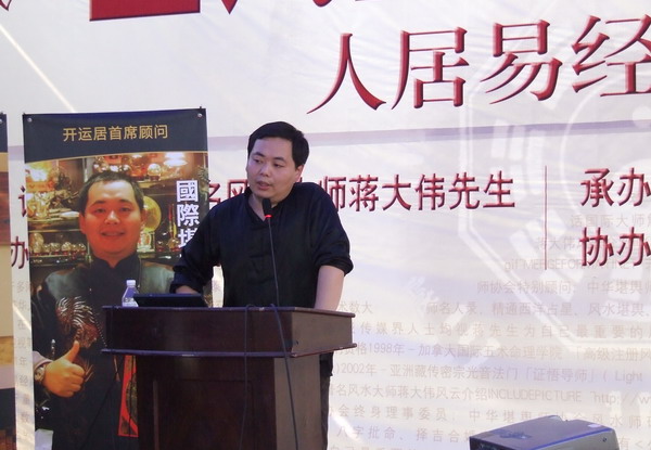 蔣大偉:浙江杭州人,畢業(yè)于杭州大學(xué)法律系并先后進修于多間學(xué)府?,F(xiàn)為香港易經(jīng)商學(xué)院執(zhí)行董事,泰國易經(jīng)風(fēng)水師協(xié)會特別顧問;中華堪輿師協(xié)會終身理事委員;中華堪輿師協(xié)會風(fēng)水師研究班兼課教授;亞洲佛教事業(yè)光音法門證悟?qū)煟?002年在香港獲頒華人世界十大杰出實戰(zhàn)風(fēng)水名師金鼎獎,榮獲列名2003年亞洲玄學(xué)術(shù)數(shù)大師名人錄,精通西洋占星、風(fēng)水堪輿、卜卦起名、八字批命、擇吉合婚和企業(yè)管理等,著有<公司旺業(yè)寶典>、<商鋪風(fēng)水寶典>、<家居風(fēng)水寶典>等,是美國華人社區(qū)、搜狐網(wǎng)站的特聘風(fēng)水命理老師。蔣先生研究風(fēng)水命理,實際堪輿卜卦論命的經(jīng)驗,已累積超過七千多個案例了,其學(xué)問和實踐受到了包括澳門蓮花衛(wèi)視,香港鳳凰衛(wèi)視等數(shù)十家知名媒體的獨家采訪。