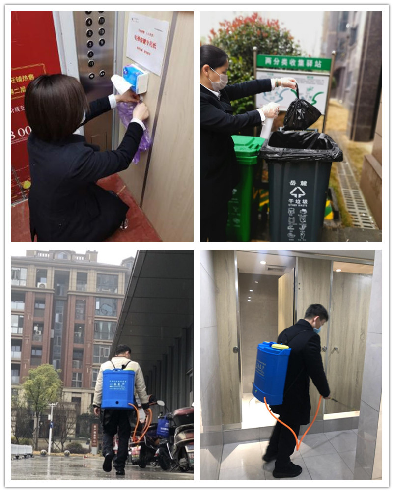 為確保園區(qū)防疫工作正常開展,八方小區(qū)B區(qū)保潔員胡小滿毫不猶豫分擔(dān)各項(xiàng)工作,一個(gè)人肩負(fù)B區(qū)全部公共區(qū)域(30個(gè)棟樓、48個(gè)單元)及84臺(tái)電梯轎廂的消殺任務(wù)。一個(gè)噴霧箱重50余斤,一次全覆蓋消殺耗時(shí)6小時(shí),一天消殺需20余箱,當(dāng)一天工作結(jié)束時(shí),他肩膀早已磨出兩條勒痕。胡小滿堅(jiān)持每天清查園區(qū)292個(gè)垃圾桶,擦拭垃圾桶上的果皮殘?jiān)?,他說:“只有保持垃圾桶周圍環(huán)境的干凈,才能減少疫情傳播,這是我能想到的,所以我就這樣去做了。”